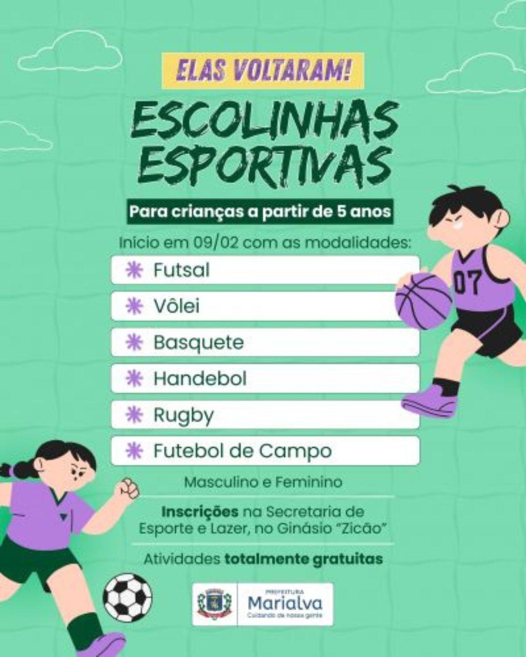 O incentivo ao esporte e à saúde começa cedo em Marialva. A Prefeitura Municipal, por meio da Secretaria de Esporte e Lazer, confirmou o início das atividades das escolinhas esportivas municipais para o próximo dia 9 de fevereiro de 2026.
