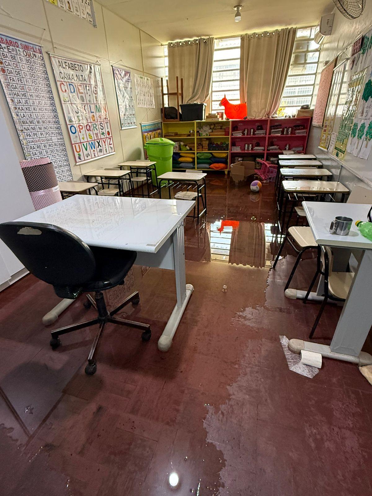 Saúde: A Unidade Básica de Saúde (UBS) também foi alagada, com prejuízos no telhado e nas janelas.